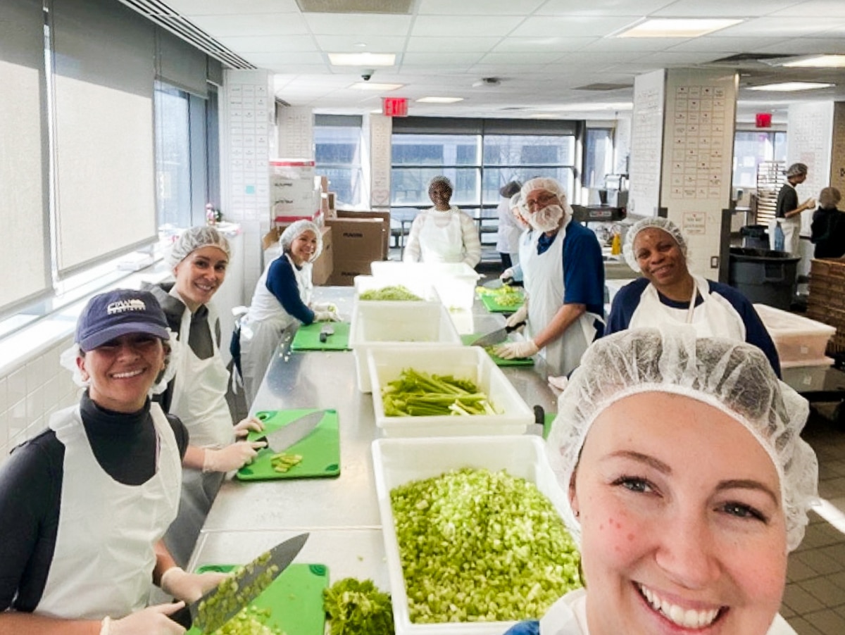 Our team has donated goods and helped cook, pack, and distribute food at the New York City Food Bank.