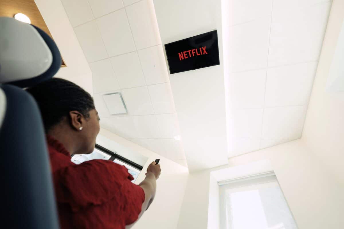 Every treatment room is equipped with a ceiling-mounted TV so you can relax with a show or movie during your visit.